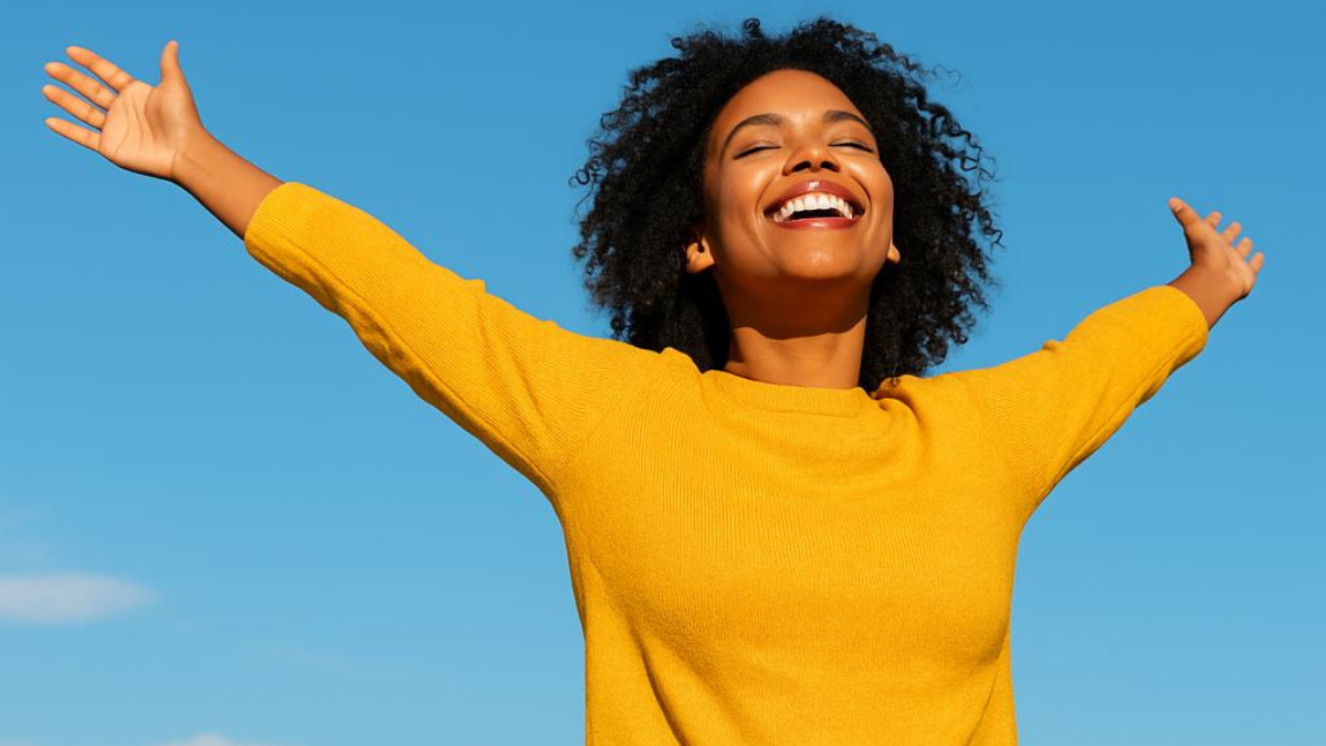 Mulher feliz vivendo a santidade no dia a dia